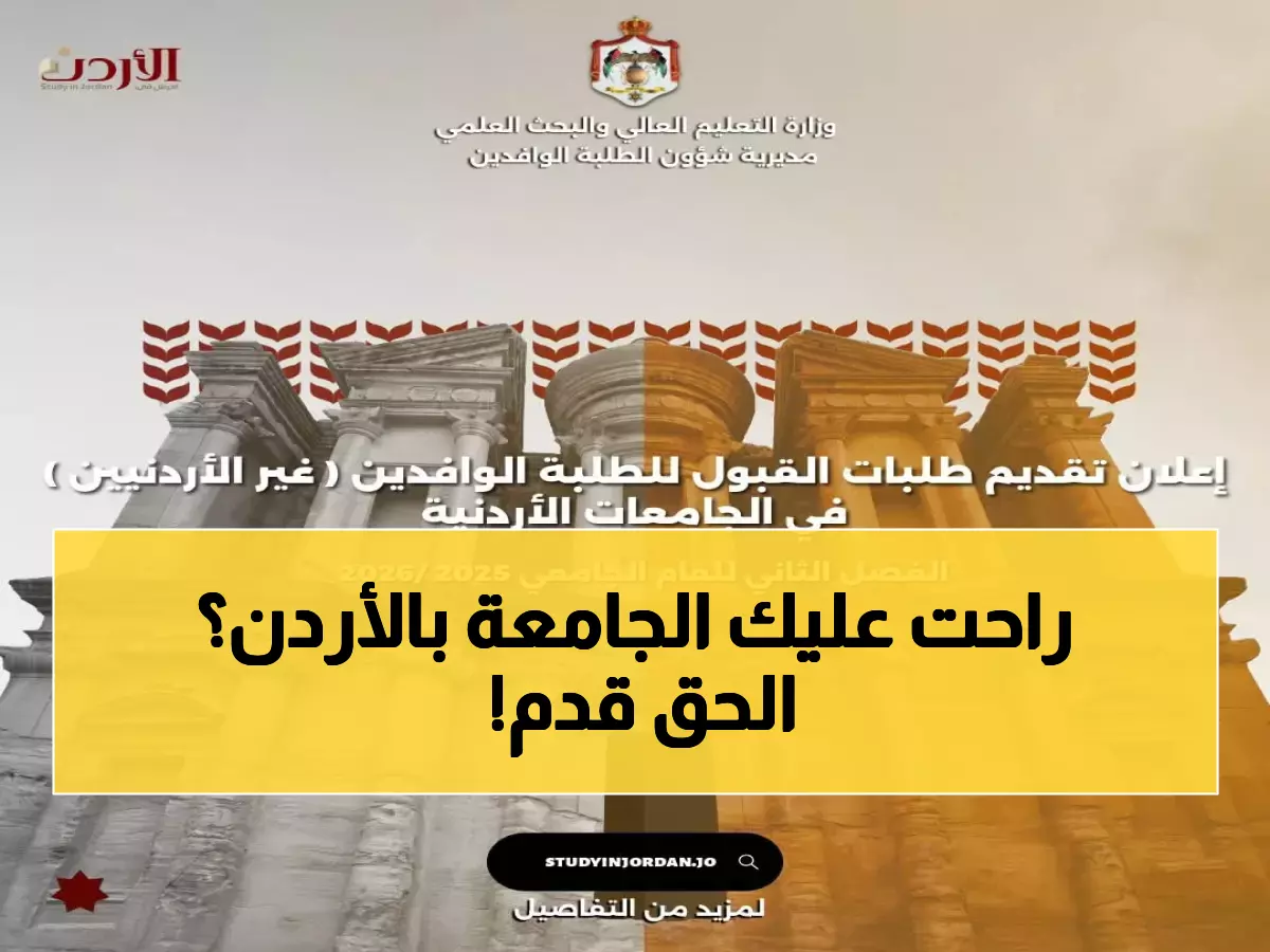 عاجل: الأردن تفتح باب القبول الجامعي للطلبة الوافدين... آخر فرصة للتسجيل قبل 12 مارس!